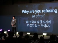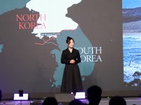 주제강연을 하는 임현수 TMTC 대표, 정유나 탈북 방송인