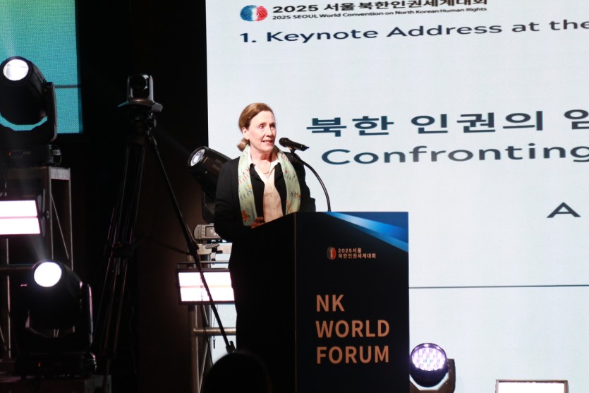 주제강연을 하는 수잔숄티 미국 디펜스포럼 회장,